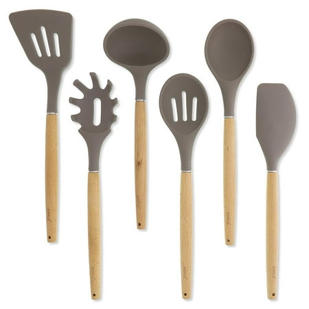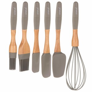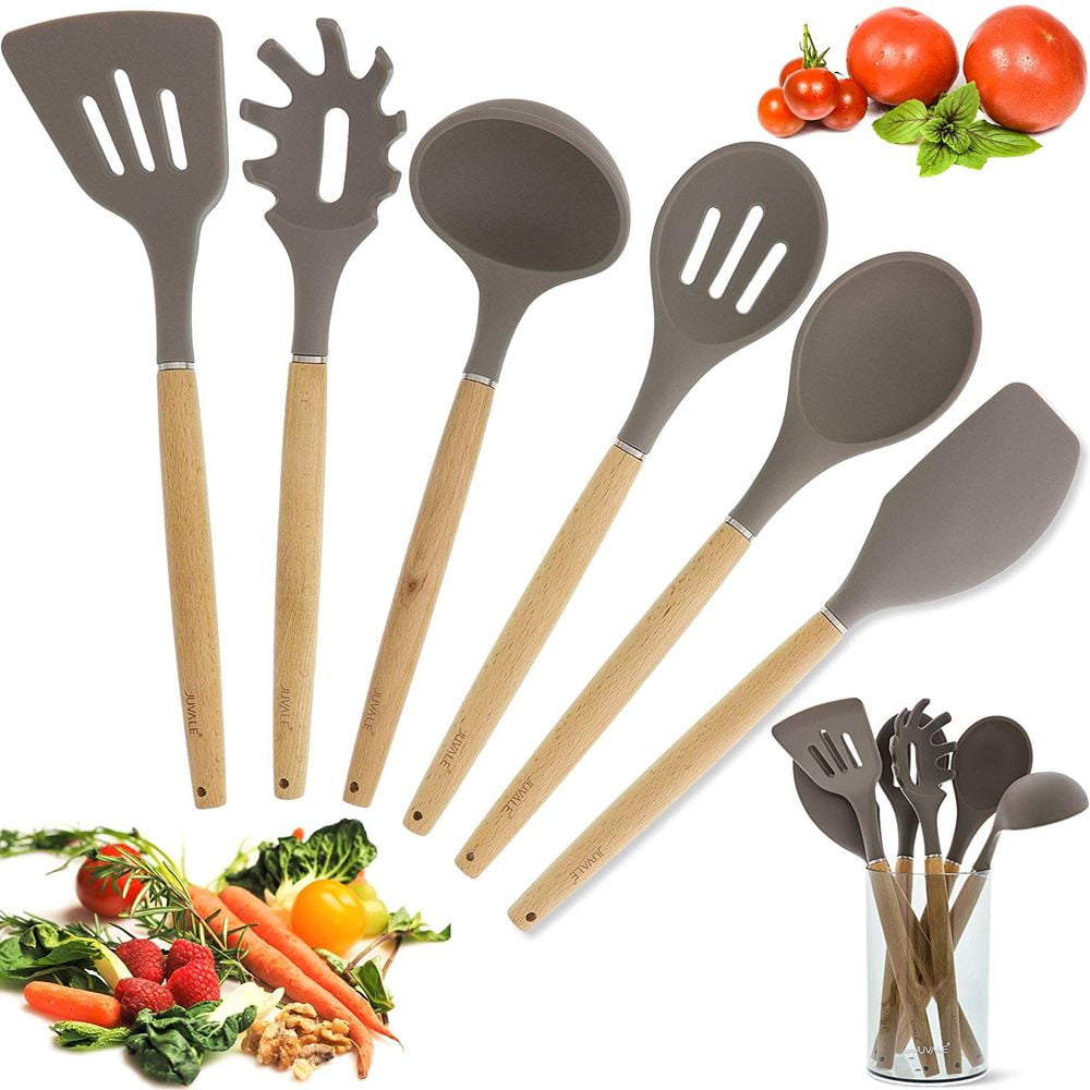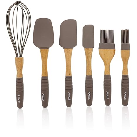 Juvale Baking Utensils Silicone Kitchen Set 6 Piece Set Wood Handles