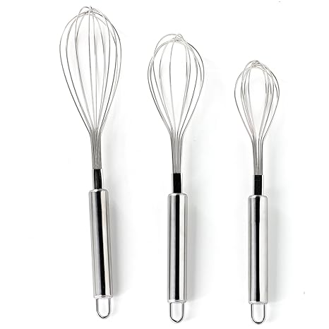 This item chichic 3pcs 8 inch 10 inch 12 inch stainless steel whisk kitchen whisk set kitchen whip kitchen utensils wire whisk balloon whisk set for blending whisking beating and stirring. Free shipping on orders over 25 shipped by amazon. Ouddy 3 pack stainless steel whisks 81012 wire whisk set kitchen wisks for cooking blending whisking beating stirring.