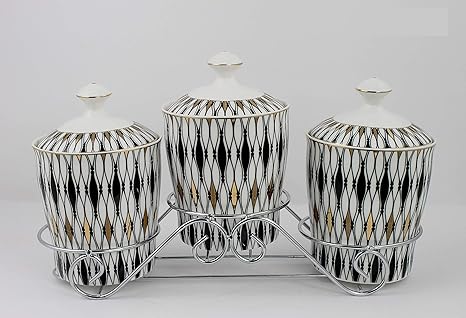 Amazon Com 3pcs Canister Set With Stand Kitchen Dining