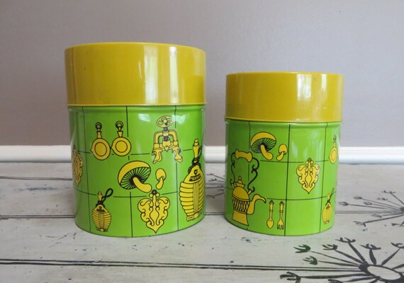 Retro Kitchen Canisters Canister Set Kitchen Storage Metal Canisters Green And Yellow Funky Kitchen Kitschy Kitchen