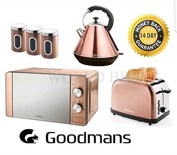 Copper Microwave 20l Diamond Kettle 1 8l 2 Slice Toaster 3 Canisters Set