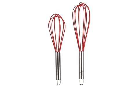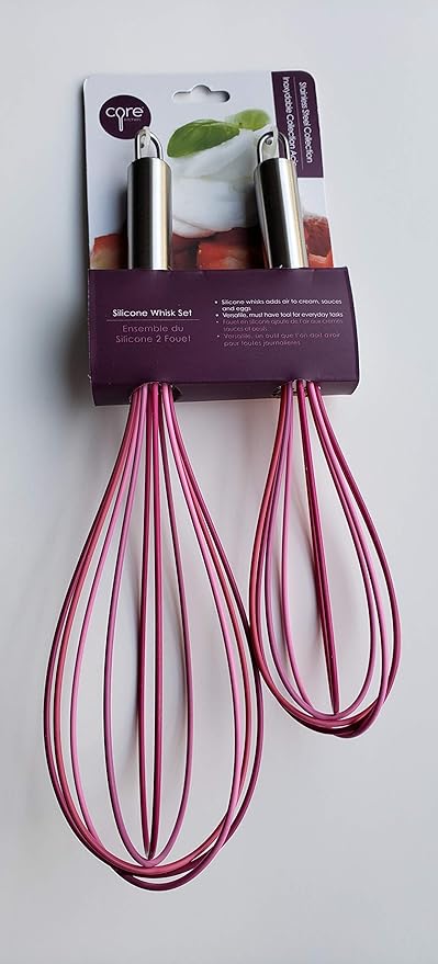 Core kitchens modern silicone whisk sets are designed with a bright colored silicone head and modern stainless steel handles. Nonporous and easy to clean each utensil is dishwasher safe and will not absorb stains or odors. Core kitchen whisk set 2 pc stainless steel 12 red handle 9 pink handle balloon type.