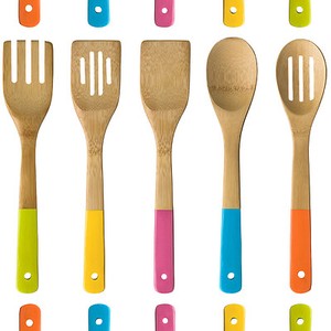 Details About 5 Piece Colour Handle Wooden Kitchen Five Utensil Set Cooking Tool Bamboo Wood