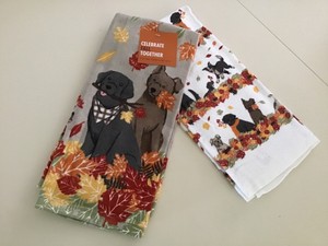 Details About Kohls Celebrate Fall Dogs In Leaves Kitchen Towels Set Of 2