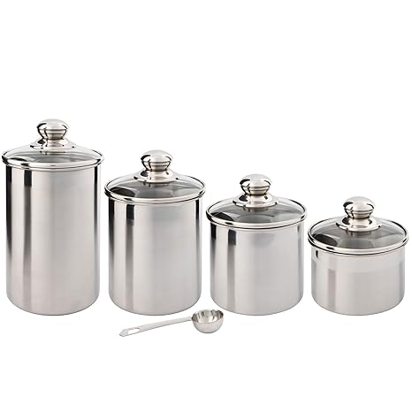 Beautiful Canisters Sets For The Kitchen Counter Small Sized 4 Piece Stainless Steel With Glass Lids And 20 Ml Measuring Scoop Silveronyx Tea
